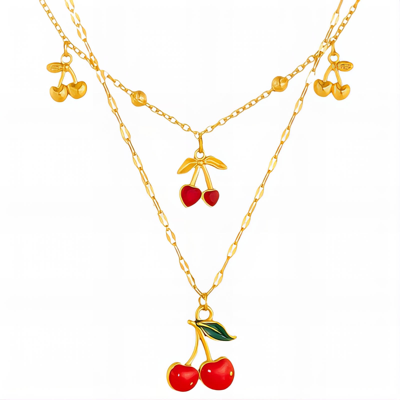 Cherry Necklace, 18K Gold Plated Steel